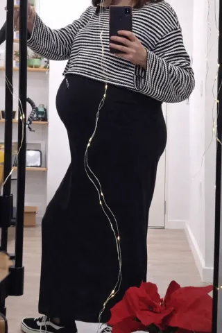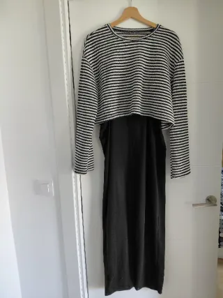 Conjunto de 2 piezas de embarazada formado por un jersey a rayas y un vestido que llega hasta los tobillos. Conjunto de dos piezas diseñado para premamá. El top de rayas combina con un vestido largo. - Top de manga larga con estampado de rayas. - Vestido largo liso.