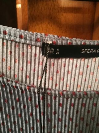 Hecho en Colombia. La falda es de cintura alta, queda como una minifalda alta y un top cruzado por detrás. Vale para S y XS