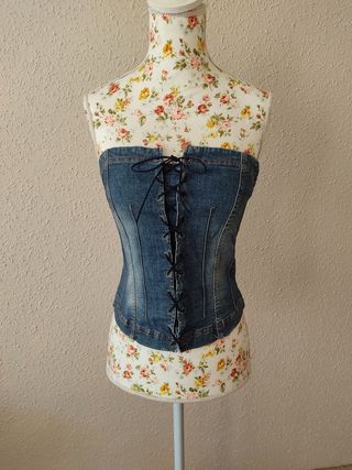 Top corto tipo corset de tejano elástico. Muy cómodo.
