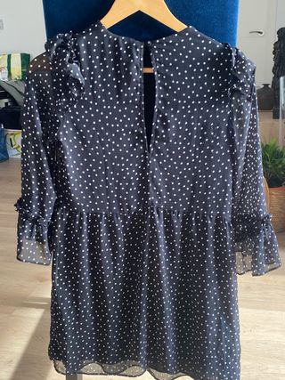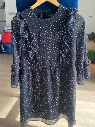 vestido de topos en blanco y negro, talla XS pero es muy grande 170 cm manga larga y corte corto