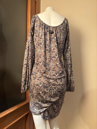 Vestido con estampado floral y manga larga. - Diseño cruzado. - Detalle fruncido en la falda y top. - Cintura elástica. - Con cinturón también queda bien - Muy original - Escote asimétrico