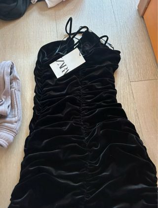 Vestido de terciopelo negro de Zara. - Material: Terciopelo. - Talla: S (26 / 36). - Precio original: €29.95. Llave un top de regalo nuevo 🤭