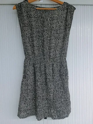 Vestido de Zara con un diseño elegante y detalles delicados. Para recoger en persona: 📍METRO EMBAJADORES ,MADRID - Tejido con estampado de topos. - Adornado con volantes. - Tirantes finos.