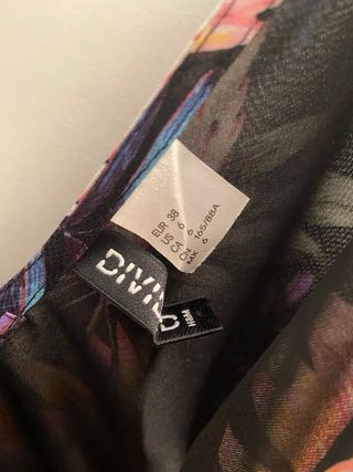 Vestido con un bonito estampado floral en tonos vibrantes. Ideal para lucir un estilo fresco y llamativo. Talla aproximada. - Diseño con escote en V. - Mangas cortas con volantes. - Tejido ligero y fluido.