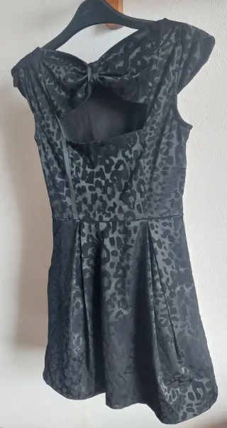 Elegante vestido de fiesta de Zara negro y dorado. - Tejido con estampado floral. - Detalle de nudo en la cintura. - Mangas acampanadas. - Abertura en la falda. - Cremallera lateral oculta. - Precio original: 49,95