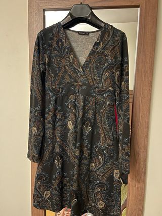 Vestido de manga larga con un bonito estampado paisley. Es muy cómodo y versátil. - Diseño con escote en V. - Cintura marcada. - Tejido suave al tacto.