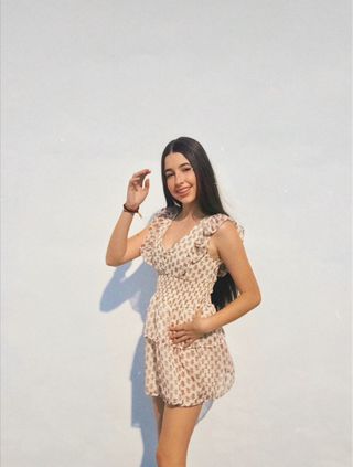 Precioso vestido corto de Zara en color rosa. Es de tirantes finos y tiene un estampado floral delicado. Ideal para verano. - Corte acampanado - Escote en pico - Cierre con lazadas en la espalda