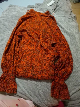 Vestido de H&M con estampado floral. - Diseño cómodo y ligero. - Manga larga. - Cuello camisero con botones.