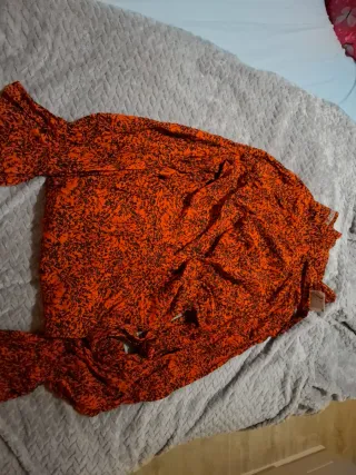 Vestido naranja y negro estampado.