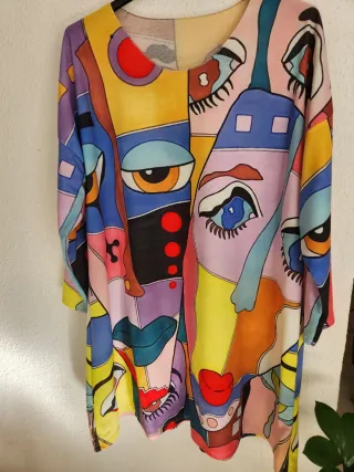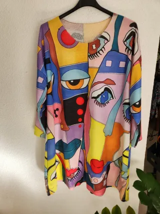 Vestido con un diseño artístico. Estampado abstracto con múltiples rostros y formas. Manga larga. Tejido suave y muy agradable al tacto Talla/U