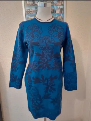 Vestido de punto de Adolfo Dominguez con un llamativo estampado. Nunca se uso. - Diseño de manga larga. - Corte entallado. - Estampado floral en contraste.