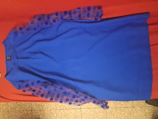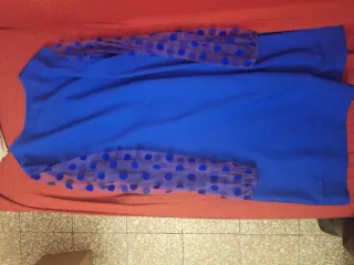 Vestido azul con mangas de lunares