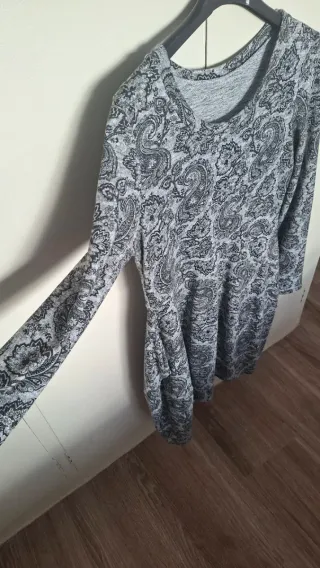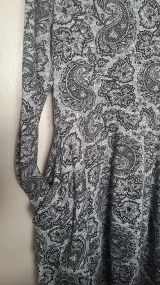 Vestido corto de invierno con un bonito estampado paisley. Ideal para lucir a la moda en los días más fríos. - Diseño de manga larga. - Incluye prácticos bolsillos laterales.