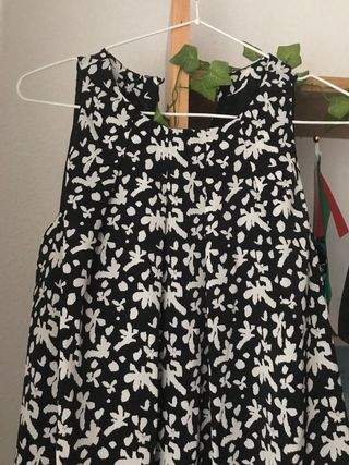 Vestido corto sin mangas de color blanco h negro en buen estado - Estampado floral. - Diseño sin mangas. - Cuello redondo