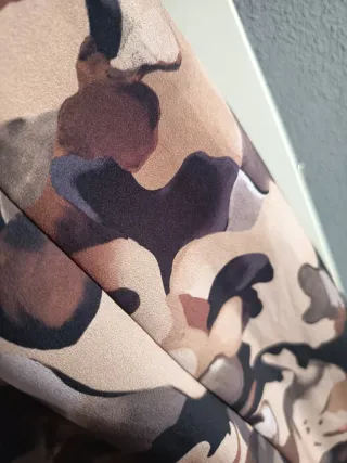 Vestido con estampado de cebra en tonos beige y negro. - Diseño de manga 3/4 - Corte recto. 80 cm largo, 40 cm sisa y 45 cm cadera