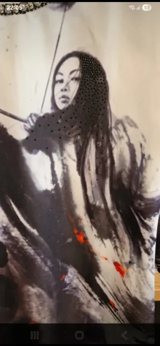 Vestido con un diseño artístico y llamativo. - Estampado de inspiración oriental. - Detalle de pedrería en el cuello. - Manga tres cuartos. _El material es como si fuera neopreno, no lo tengo muy claro