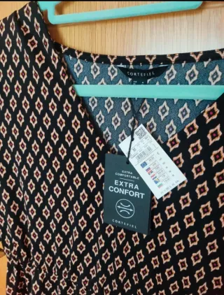 Nuevo! Vestido Cortefiel t.42 - Diseño con cuello en V. - Tejido de otoño,no es fino - Estampado geométrico 50cm pecho 95cm largo