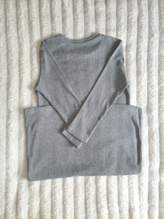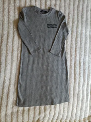 Vestido de canalé gris de Bershka. - Diseño ajustado. - Manga media. - Estampado 100k FOLLOWERS FOLLOWING NO ONE en el pecho.