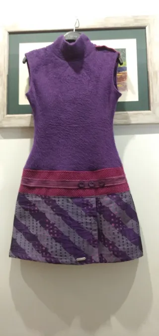 En perfecto estado "Dolores Promesa" t.42-44 Vestido sudadera con bolsillos estampado de aves y detalles en tonos rosados y morados. Muy cómodo 50cm pecho 88cm largo