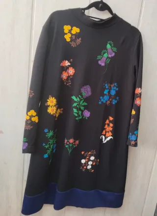 Vestido de la marca Desigual con un llamativo estampado de flores. - Diseño en color negro. - Estampado multicolor de flores blancas y amarillas. - Tejido ligero y fluido.