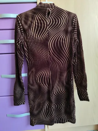 Vestido de Bershka con un diseño llamativo. - Estampado de líneas onduladas en tonos marrón. - Corte cut-out en la zona del pecho. - Manga larga. - Cuello alto. - Corte ajustado - Tejido suave - Nuevo sin etiqueta - Talla S