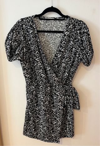 Vestido corto de Mango con estampado floral. - Diseño cruzado. - Manga corta abullonada. - Cintura elástica con lazada.