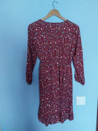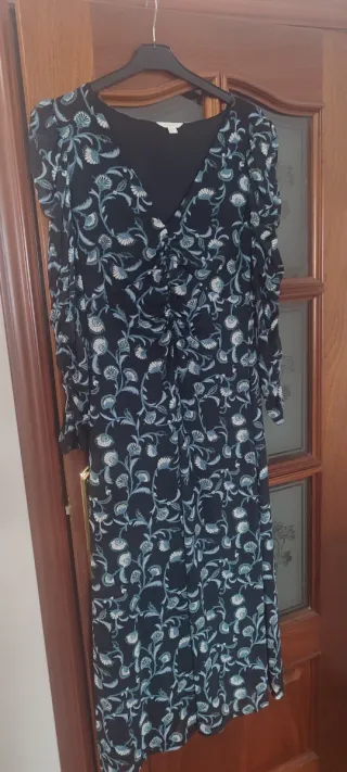 Vestido largo con estampado floral de Springfield. El diseño presenta un escote en V y mangas largas. - Estampado floral. - Escote en V. - Mangas largas. - Tiene un forro que es otro vestido debajo. - Talla M generosa, da hasta una 40 ó 42.