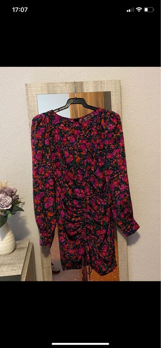 Vestido con un llamativo estampado floral y detalles fruncidos. - Diseño de manga larga. - Fruncido ajustable en el lateral.