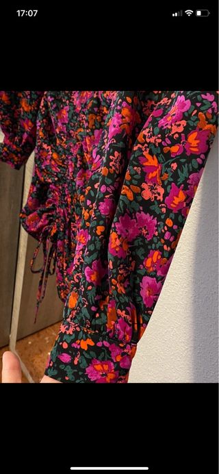 Vestido de Zara con un diseño patchwork y estampado floral. Ideal para un look único. - Manga larga. - Cintura elástica fruncida. - Falda con vuelo.