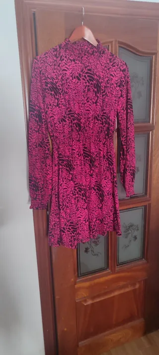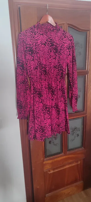 Vestido estampado rosa y negro elástico Talla L