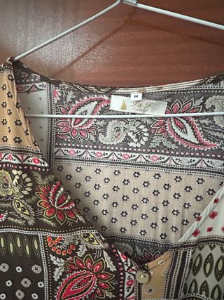 Vestido con un bonito estampado patchwork. - Diseño con escote en V. - Cierre de botón. - Estampado floral y paisley.