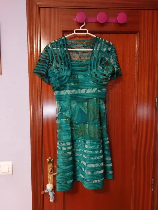 Vestido de fiesta verde, estampado juvenil