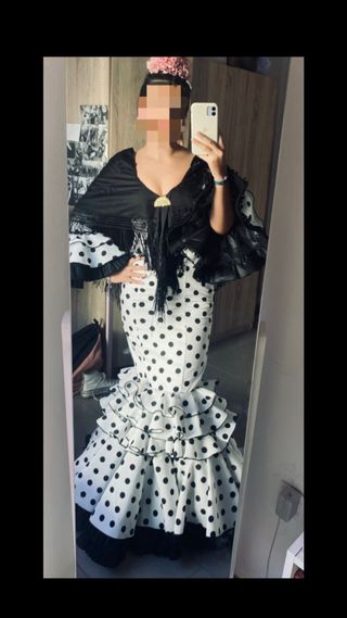 Vestido de flamenca con estampado de lunares. - El vestido esta nuevo , tiene 2 puestas. - Es de lunares con la espalda un poco descubierta , se queda precioso con o sin mantocillo. - Yo mido 1,60 y uso la talla S , me queda perfecto aunque un poco largo .( si alguien quiere las medidas preguntar)