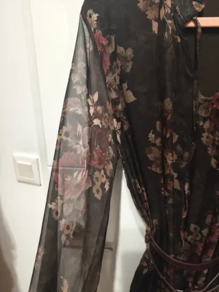 Vestido de Zara con un llamativo estampado floral muy elegante - Diseño con cinturón para ajustar. - Mangas largas abullonadas. - Cuello alto. -cremallera hasta mutad de la espalda