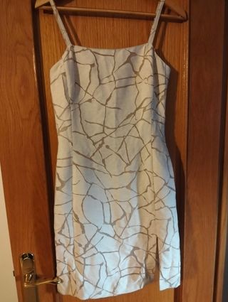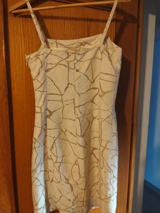 Vestido beige y blanco con estampado para ocasione