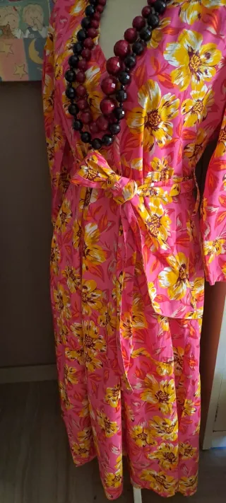 Vestido floral rosa y amarillo