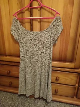 Vestido corto con estampado de leopardo, ideal para el verano. - Diseño de corte holgado. - Escote amplio. - Mangas cortas.