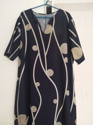 Vestido largo talla M/L. Está nuevo. El estampado es como en la foto 1, en el resto de las fotos se ve peor. Tiene bastante escote, si no te gusta muy abierto se le puede dar una puntada o poner un imperdible. Tiene un 5% de elastán. No tiene marca. 📏Desde el cuello hasta el corte 41cm Desde el corte hasta el final 1m 🩷 En mi perfil cositas de decoración, mujer y niña.