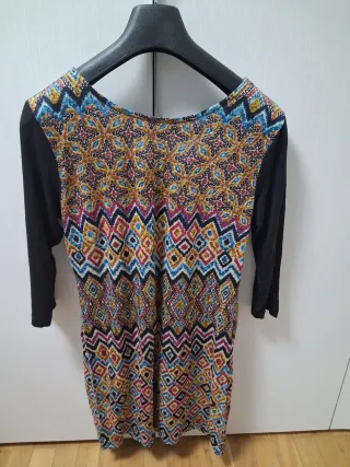 Vestido con estampado floral en tonos azules y multicolor. Presenta un diseño con mangas largas y falda con vuelo. - Estampado floral. - Mangas largas. - Diseño con vuelo. Son dos vestidos iguales pero con distinto estampado. Cómodos. Talla S amplia. S-M. 10 euros unidad. Cogiendo los dos, descuento de 2 euros.