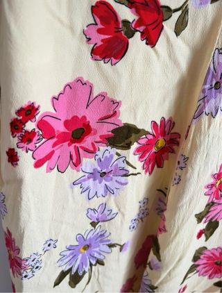 Vestido largo de Zara con un estampado floral y diseño drapeado. - Tejido ligero y vaporoso. - Estampado de flores y motivos orientales. - Diseño asimétrico con drapeado lateral.