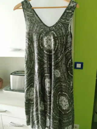 Vestido ligero con un bonito estampado.de axila a axila 45 cms - Diseño sin mangas. - Escote en V. - Estampado circular detallado.