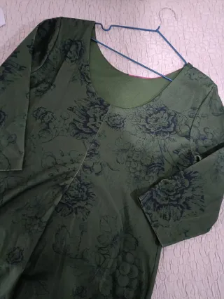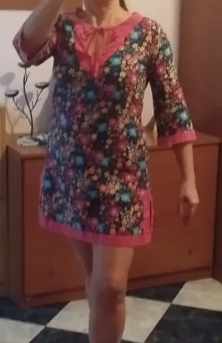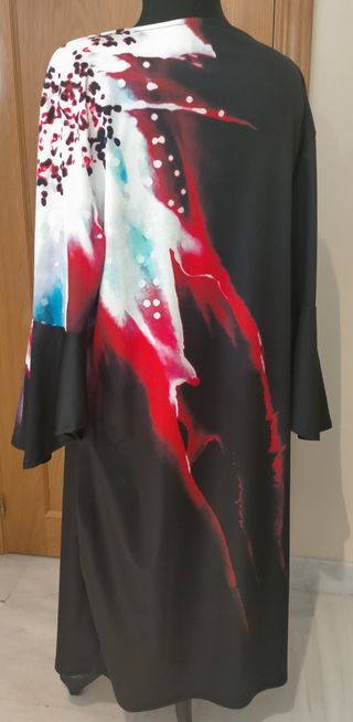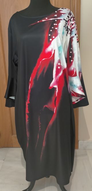 Vestido muy estiloso y muy cómodo de lavar y poner talla 52-54 3xl sin utilizar a estrenar, mirar el catálogo puse más vestidos
