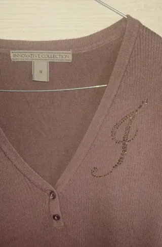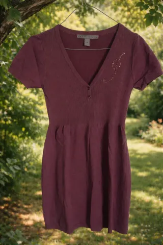 Vestido de manga corta con un diseño muy estiloso. Marca Innovate collection talla M La parte superior es de canalé y la falda tiene una caída suave. - Detalle de inicial J con pedrería en el pecho. - Cuello en pico con dos botones. - Cintura marcada.