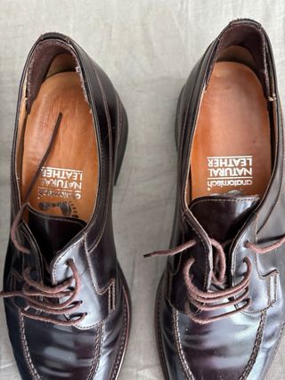 Elegantes zapatos de vestir estilo Bow Tie. - Color marrón oscuro. - Diseño clásico con cordones. - Costuras decorativas. - Acabado brillante.