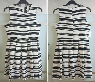 Como Nuevo, solo puesto unas horas. Talla S. Elegante vestido estilo midi con un diseño de rayas clásico. Ideal para eventos especiales. - Diseño sin mangas. - Cremallera invisible en la espalda. - Falda con ligero vuelo y pliegues. - Forro interior de seda. No hago envíos, recoger por mi zona.