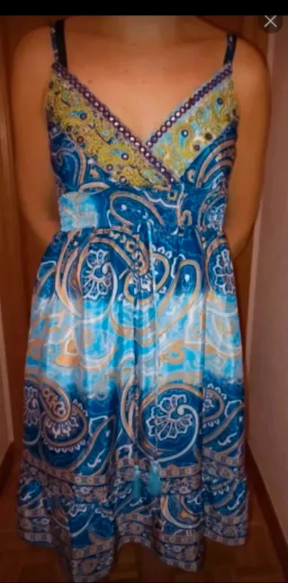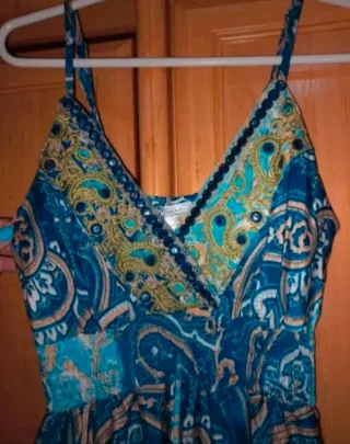 Vestido largo de verano con nido abeja, elegante , fresco. Talla 44/46 sin problema la tela es cómoda de caída y suelto, como nuevo. - Diseño con tirantes finos. - Estampado floral y de estilo paisley. - Largo hasta los tobillos.