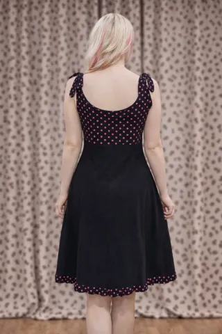 Vestido original de la marca Too Fast, estilo alternativo / pin-up en negro con lunares rosas y detalles de calaveras mexicanas en el pecho. Diseño muy favorecedor con tirantes anudados en los hombros y cintura marcada. Los botones con forma de calavera y el contraste de lunares rosas le dan un estilo rockabilly muy llamativo. Axilas: 44 Pecho: 100 Cintura: 40 Caderas: 48 Largo: 96 Elástico. Solo usado una vez. Modelo descatalogado, ya no se encuentra en tiendas. #pinup #pinupvintage #retro #toofast #vintage #oldschool #rockabilly #calavera #lunares