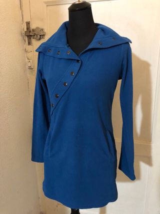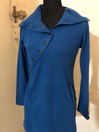 Vestido polar estilo vintage de la marca Japoma. Un diseño original y cómodo. - Cuello alto con botones. - Cierre cruzado asimétrico con botones. - Bolsillos laterales.