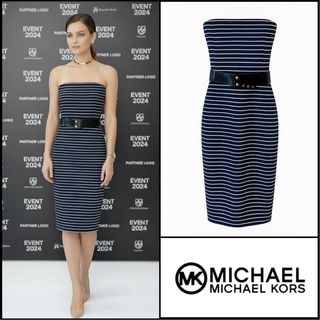 Vestido Michael Kors sin tirantes rayas y cinturón
