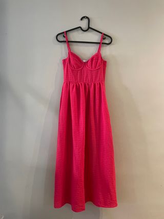 Vestido Midi Fucsia Stradivarius Talla XS
